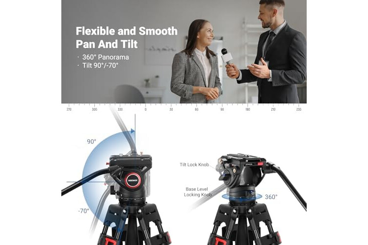 NEEWER 74" Video Tripod with Fluid Head, QR Plate , Aluminum Heavy Duty Camera Tripod Professional for DSLR Cameras Camcorders, Max Load 17.6lb/8kg, TP74