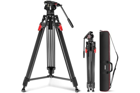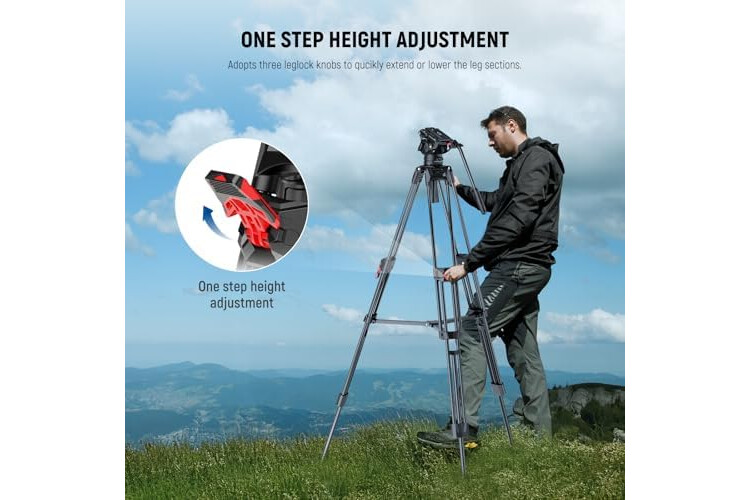 NEEWER 76" Video Camera Tripod with Fluid Head, One Step Quick Release Portable Tripod, Aluminum Heavy Duty Tripod Stand, Dual Mode QR Plate for DSLR Cameras Camcorders, Max Load 17.6lb, LL27