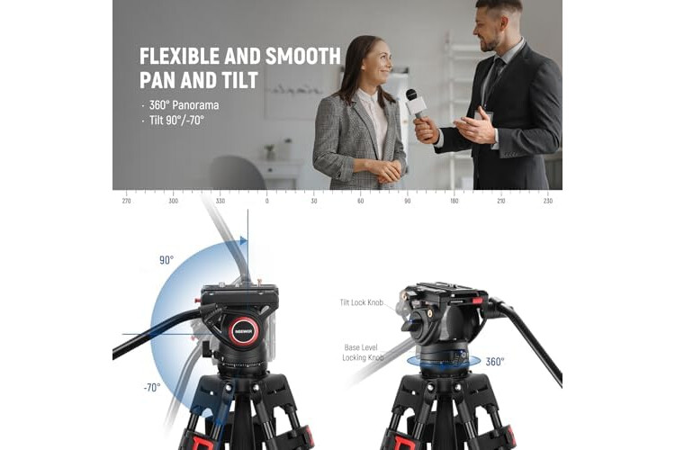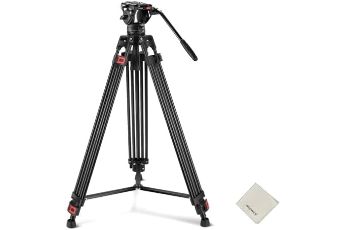 NEEWER 74" Video Tripod with Fluid Head & Damping Control, Aluminum Heavy Duty Camera Stand Professional with QR Plate for DSLR Camcorders for Video Recording, Cleaning Cloth, Max Load 17.6 lbs, TP74