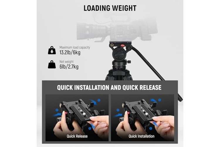 NEEWER Video Tripod with Fluid Head, Heavy Duty Aluminum Compact Portable Camera Tripod Stand for DSLR Camcorder Compatible with DJI Gimbals Compatible with Manfrotto QR Plates, Max Load 13.2 lb, TP73