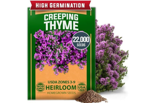 HOME GROWN Purple Creeping Thyme Seeds Non-GMO Ground Cover Flowers 22000+ Edible Herb Seeds for Planting Lawns & Paths 3g Perennial Thymus serpyllum