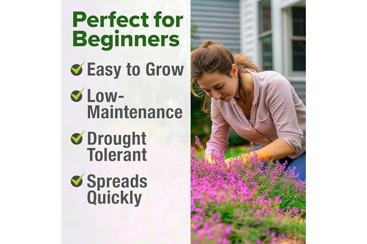 TRANSFORM PATIOS AND OPEN SPACES BEAUTIFULLY – Creeping thyme seeds ground cover creates a dense, low-growing mat of vibrant foliage. Perfect for replacing turf or mulch, it adds instant charm to sun-drenched areas while resisting foot traffic.