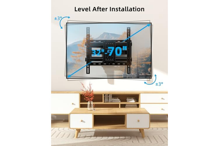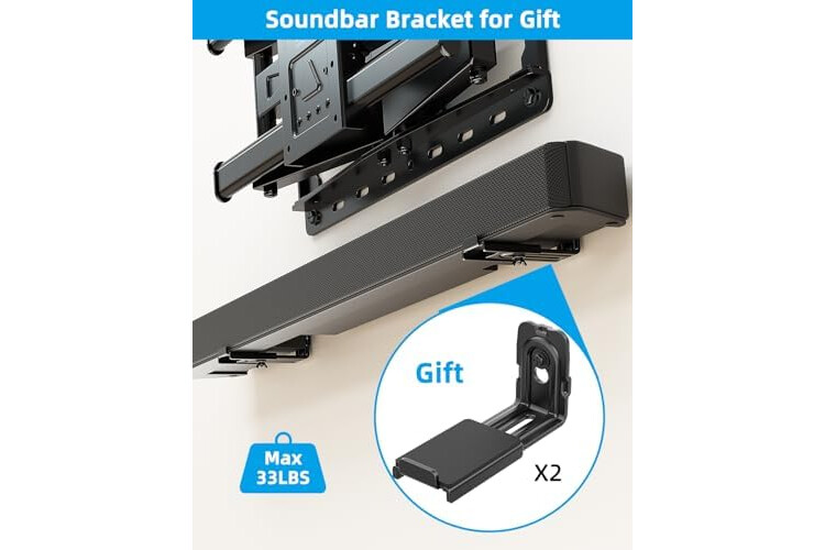 Universal Compatibility: The TV wall mount fits most 32-70 inch flat or curved TVs up to 132 lbs, supports VESA 200x75mm to 400x400mm. Also, this TV mount comes with a set of soundbar bracket for you to use, you don't need to buy soundbar bracket again! Bring you a better movie watching effect