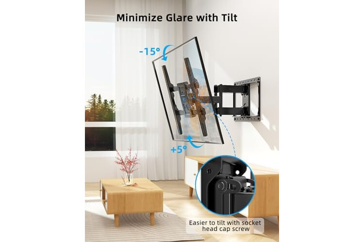 Expandable Design: The TV wall mount is built with dual articulating 6 arms support for expandable function. The full-motion TV mount extends 16.5" for viewing, helping to reduce neck and eye strain, so you can enjoy your favorite shows and movies in maximum comfort. It also retracts to 2.67" from the wall for a space-saving, low-profile look