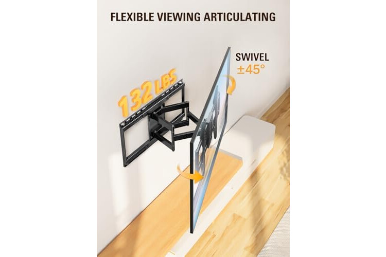 Universal TV Mount: Full Motion TV Mount for most 42-86" TVs up to 132 lbs. with MAX VESA 600mm x 400mm and 16-24 inch wood studs spacing. Please check the TV VESA and TV weight, compatible wall types and possible blocked input before purchasing.