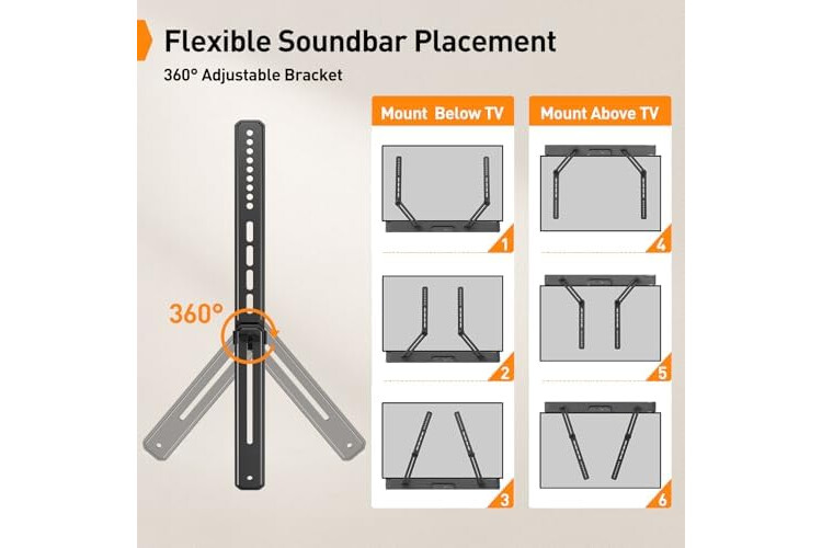 2 Installation Options: Perlegear’s soundbar tv mount can be installed above or bel...