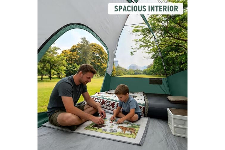 All-Weather Protection: Featuring a double-layer design with waterproof rainfly and sealed seams, this 3-season family tents for camping withstands rain, wind, and morning dew. The high-tech 1000mm coating ensures you stay dry even in rainy