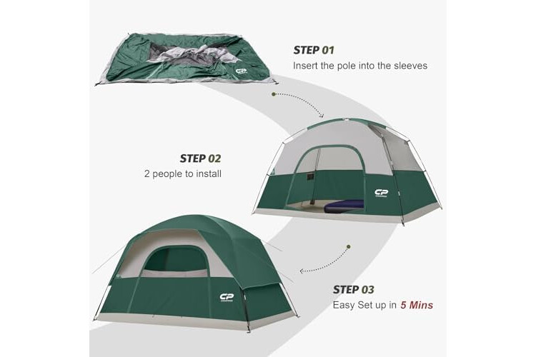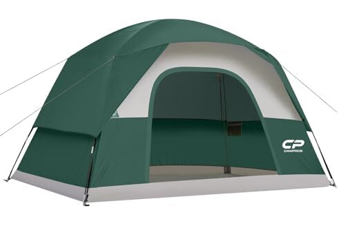 CAMPROS CP Camping Tent 2/4/6 Person, Waterproof Windproof Double Layer Dome Tent, Easy Setup with Large Mesh Windows & Wide Door for Outdoor Hiking
