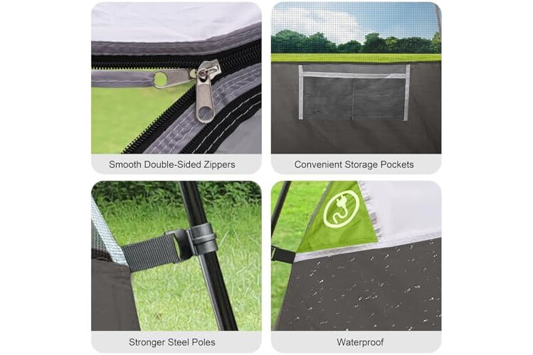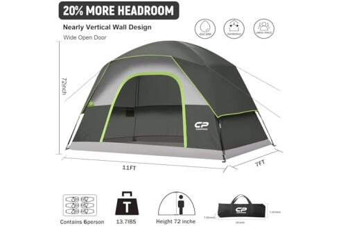 BRING YOU A UNIQUE CAMPING EXPERIENCE CAMPROS CP 4/6 PERSON DOME TENT CAMPROS is a traditional company from Cambodia, produce outdoor products include different sizes of tents, camp chairs, canopy, etc. We're a team of energetic people crazy for outdoor activities. We're working on offering customers better value products. Giving people a lower cost to close to nature Weather Protection No particular skills needed, 2 people could set up the tent easily in 5 min. High-tech coating material with sealed seams and waterproof strip keeps the water out. Gear loft with lantern hook, mesh storage pockets keep small items well organized. 20% More Headroom The nearly vertical walls that allow for 20% more headroom. 5 Minutes Setup, 2 Simple poles make setup and teardown much easier. Waterproof Rainfly - High quality waterproof fabric keep the inside of the tent dry and comfortable. Extended Door Awning Wider Open Door Much easier to move in and out the airbeds, sleeping bags and other gear. Excellent Ventilation - The camping tent with big breathable mesh design and removable rainfly provides great ventilation. Extended Door Awning - No Water Leakage