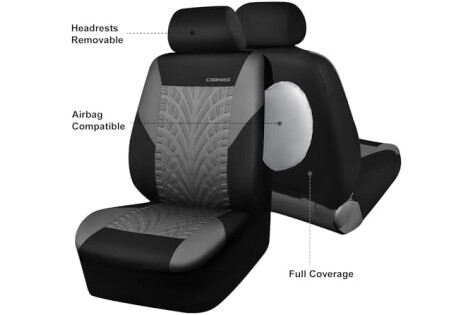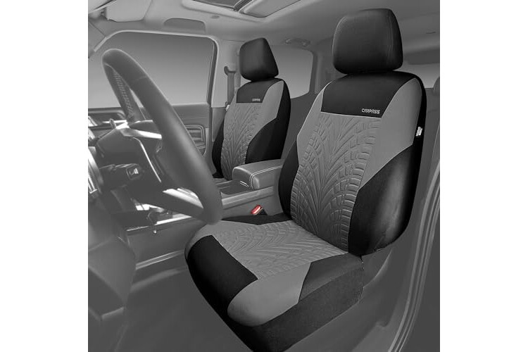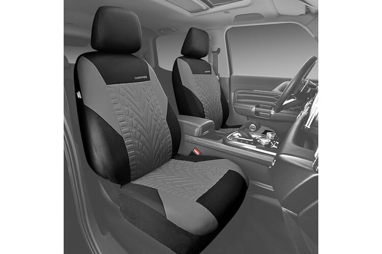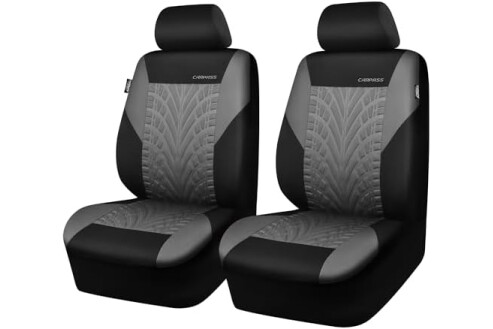 CAR PASS Car Seat Covers Two Front Only for Car, 3D Tyre Print Automotive Interior Covers, Airbag Compatible, Quick Setup Universal Fit Seat Covers for Car, Truck, SUV(Black Gray)
