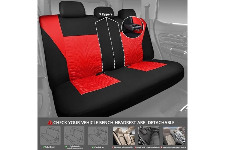 【EASY TO INSTALL AND CLEAN】 Cutouts for headrest covers and seat belts.Perfectly fit for most of vehicles with the reserved opening holes, and it is quite easy to install .it can fit vehicles 40/60 spilt,40/20/40 spilt and 50/50 split. It also allows you to fold down the cup holder by pulling down the zipper.
