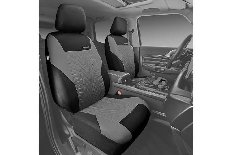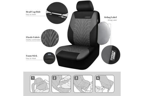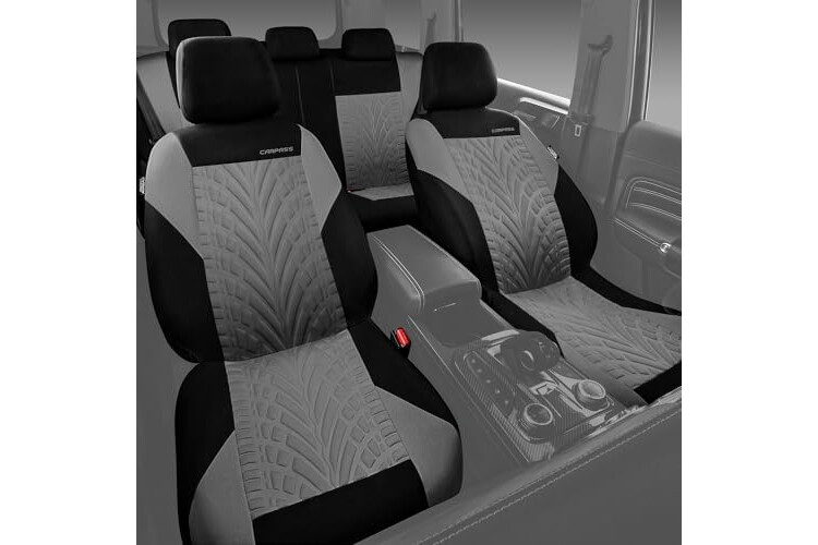 CAR PASS Car Seat Covers Full Sets, Front & Split Rear Bench for Car, 3D Tyre Embossed Automotive Interior Covers, Airbag Compatible, Quick Setup Universal Fit Seat Covers for Car, SUV(Black Gray)