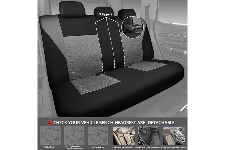 【EASY TO INSTALL AND CLEAN】 Cutouts for headrest covers and seat belts.Perfectly fit for most of vehicles with the reserved opening holes, and it is quite easy to install .it can fit vehicles 40/60 spilt,40/20/40 spilt and 50/50 split. It also allows you to fold down the cup holder by pulling down the zipper.
