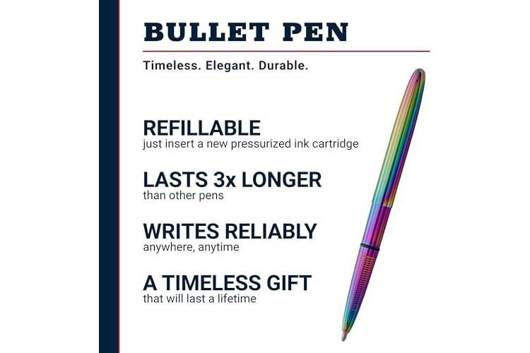 Fisher Space Pen Supernova Rainbow Titanium Nitride Bullet Pen, Pressurized Ballpoint Pen, Compact Size, Writes Upside Down, Extreme Temperatures, Black Ink, Medium Point, Gift Box, Made in USA
