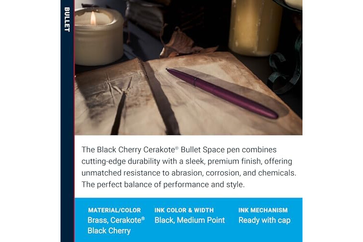 Fisher Space Pen Black Cherry Cerakote Finish Bullet Pen, Pressurized Ballpoint Pen, Compact Size, Writes Upside Down, Extreme Temperatures, Black Ink, Medium Point, Made in the USA