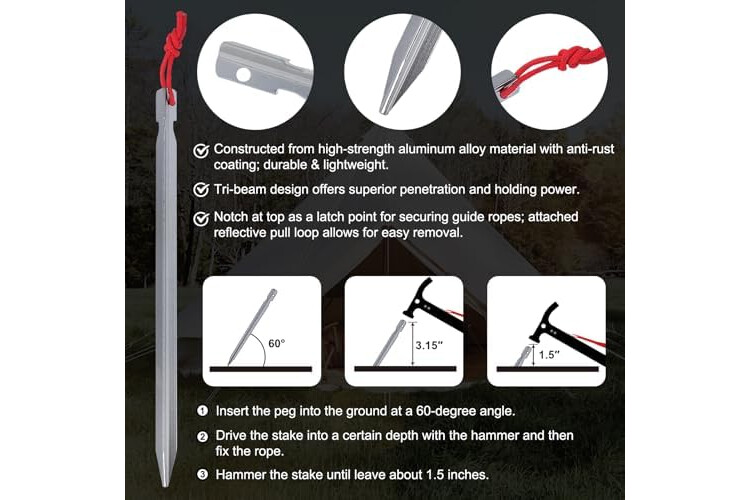 HIGH CARBON STEEL - Forged high-carbon steel head & hook for strength, durability and rust prevention.The hammer hook also can be used as tent stake puller, solid and multifunctional.