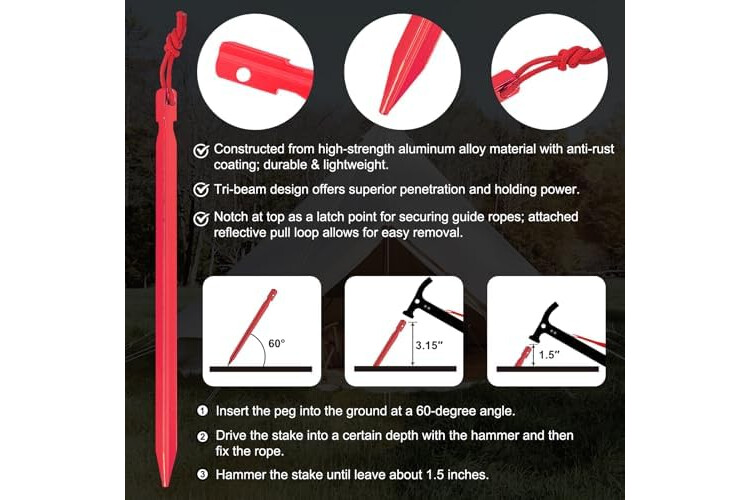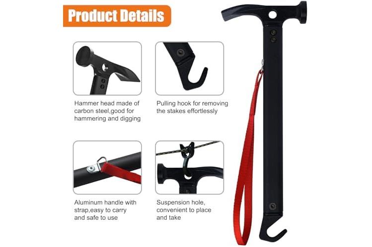 HIGH CARBON STEEL - Forged high-carbon steel head & hook for strength, durability and rust prevention.The hammer hook also can be used as tent stake puller, solid and multifunctional.