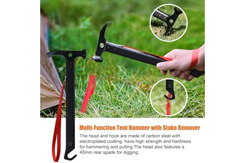 DIGGING TOOL - The camping hammer head with electroplated coating features a 40mm rear spade for focused digging.The included red cord can prevent tent mallet hammer slip during operation.