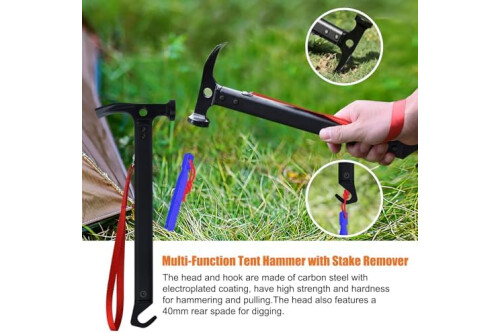 DIGGING TOOL - The camping hammer head with electroplated coating features a 40mm rear spade for focused digging.The included red cord can prevent tent mallet hammer slip during operation.
