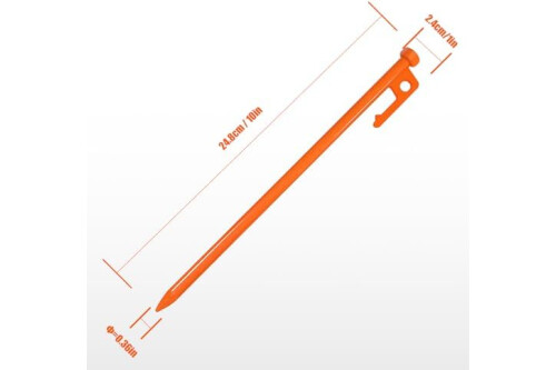 Stakes Size:With a generous length of 10 inches, these canopy stakes provide superior anchoring depth in the ground, enhancing stability and preventing tents or equipment from shifting. The 3/8-inch diameter adds strength and robustness to the stakes, making them suitable for various soil types, from soft earth to rocky terrain.