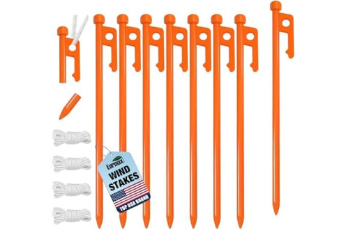 Versatile Use: Our camping stakes are versatile and ideal for securing tents, awnings, canopies, tarps, and outdoor equipment during camping, hiking, and other outdoor adventures.With a pack of 8 camping stakes , you can use them not only for your tent but also for other purposes such as securing a rainfly, guylines, or even setting up a tarp shelter.