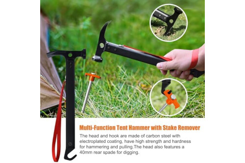 DIGGING TOOL - The camping hammer head with electroplated coating features a 40mm rear spade for focused digging.The included red cord can prevent tent mallet hammer slip during operation.