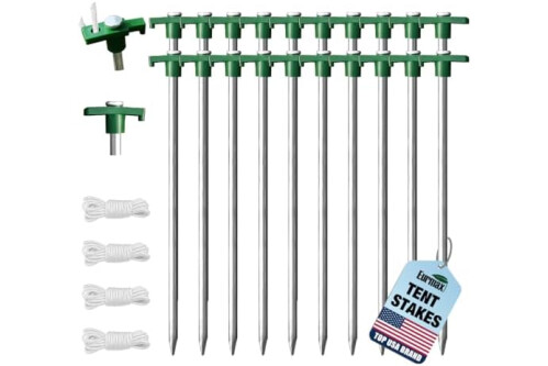Eurmax USA 20-Pack Secure Protection Galvanized Tent Stakes,Rust-Proof Steel Canopy Anchors for High Winds,Heavy Duty Commercial Ground Pegs for Camping,Pop Up Tents&Gazebos - Includes 4x10ft Ropes
