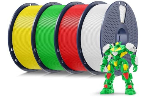 SUNLU 4kg PLA 3D Printer Filament Bundle Multicolor, Neatly Wound PLA Filament 1.75mm ±0.02mm, Individually Vacuum Packed, 4kg in Total, 1kg per Spool, 4 Pack, White+Red+Green+Yellow.