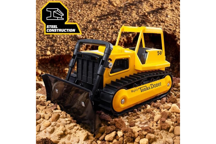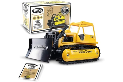Calling all Tonka fans, collectors, and aspiring builders! Get ready for the ultimate throwback with the Tonka Retro Mighty Bulldozer - Collector's Edition! Inspired by the iconic 1970 Mighty Tonka Bulldozer, this special edition truck is a nostalgic nod to its beloved toy predecessor. Built TONKA TOUGH, this truck boasts DOUBLE the steel parts and authentic retro detailing - a collector’s dream that’s made to last! Tear through the sandbox to carve out clear paths, or level imaginary terrain indoors by pushing dirt and debris aside—paving the way to your next action-packed job site. It's sturdy steel construction is tough enough to handle even the roughest play, and its retro design will shine as the centerpiece of your Tonka collection. Whether you’re looking to relive your favorite Tonka childhood memories or share the joy of real play with a new generation, the Tonka Retro Mighty Bulldozer - Collector's Edition is a must-have. Makes a great gift for kids and collectors ages 3 and up.
