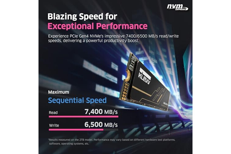 Blazing Speed for Exceptional Performance: Experience PCIe Gen4 NVMe's impressive 7400/6500 MB/s read/write speeds, delivering a powerful productivity boost. Perfect for gamers and creative pros seeking faster response and enhanced performance. (*Results measured on the 2TB model. Performance may vary based on different hardware test platforms, software, operating systems, etc.)