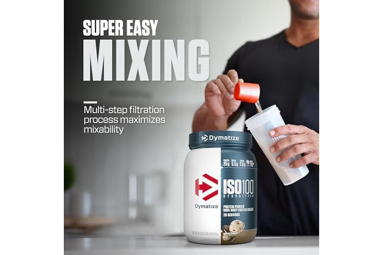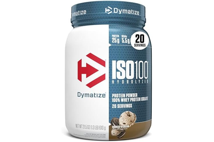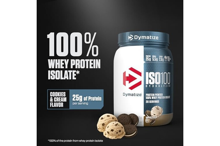 Dymatize ISO100 Whey Protein Powder Isolate, Cookies & Cream, 25g of Protein, 5.5g BCAAs, Less Than 120 Cal., Gluten Free, 1g Fat, 1g Sugar, 2g Carb (20 Servings)