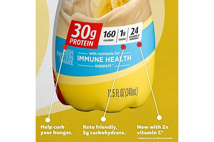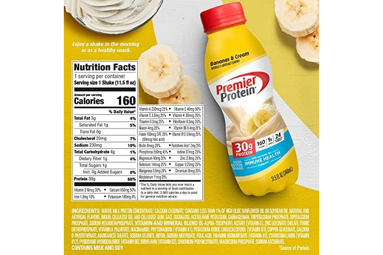 Premier Protein Shake, Bananas & Cream, 30g Protein, 1g Sugar, 24 Vitamins & Minerals, Nutrients to Support Immune Health, 12 Pack
