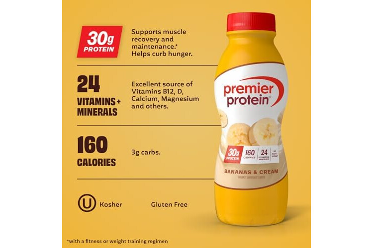 Premier Protein Shake, Bananas & Cream, 30g Protein, No Added Sugar, 24 Vitamins & Minerals to Support Immune Health, 11.5 fl oz, 12 Pack