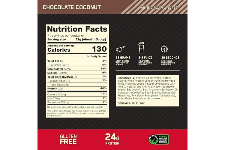 Optimum Nutrition Gold Standard 100% Whey Protein Powder, Chocolate Coconut, 5 Pound (Packaging May Vary)