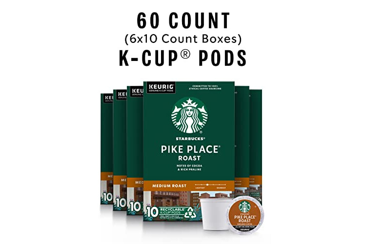 Starbucks K-Cup Coffee Pods, Medium Roast Hot or Iced Coffee, Pike Place Roast, 60 Keurig Pods