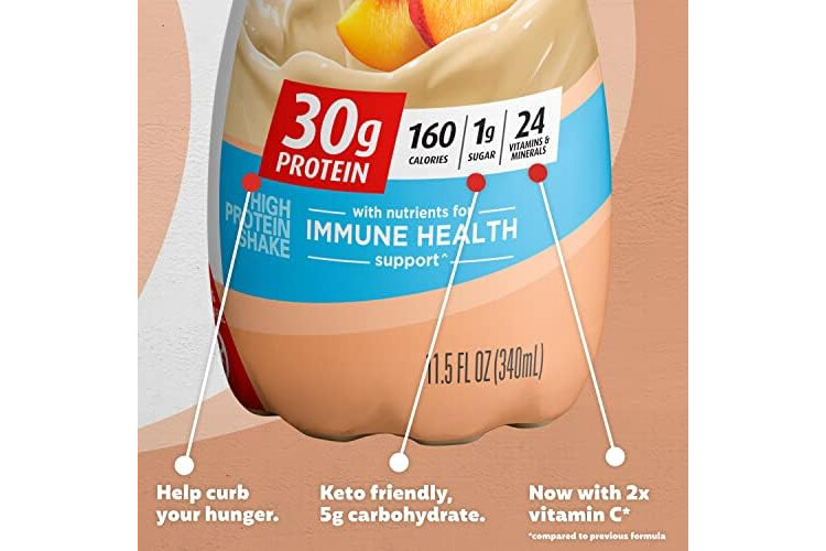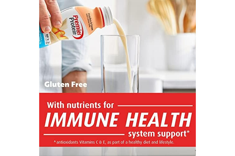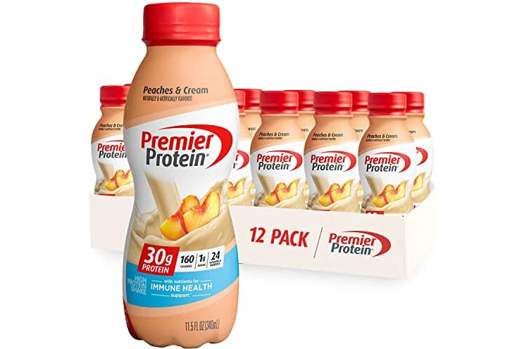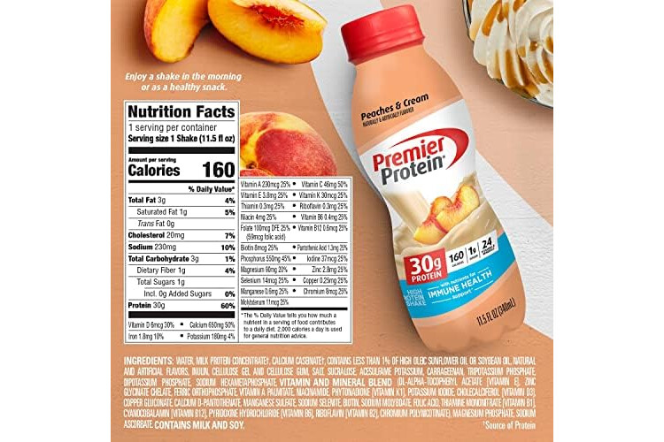 Premier Protein Shake 30g 1g Sugar 24 Vitamins Minerals Nutrients to Support Immune Health, Peaches & Cream, 11.5 Fl Oz (Pack of 12), Total 138 Fl Oz