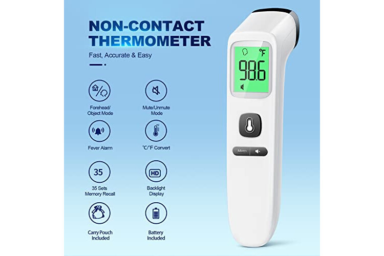 Non-Contact Thermometer for Adults and Kids, Digital Forehead Thermometer with Fever Alarm, Silent Mode and 35-Set Memory, Forehead/Object 2 in 1 Mode, FSA/HSA Eligible Thermometer 01