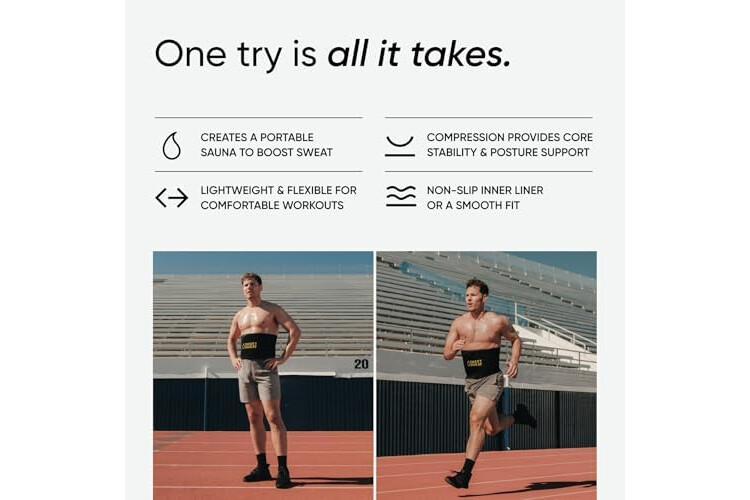 SWEAT FASTER, SWEAT HARDER: Waist trimmer designed with Neo-Sweat Technology, an anti-slip, moisture-repelling interior that provides superior heat insulation to increase core temperature for a harder, faster sweat and to cut excess water weight