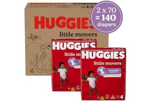 Huggies Size 4 Diapers: 140 Little Movers Baby Diapers (2 Packs of 70), size 4 (22-37 lbs); packaging may vary