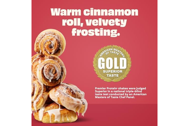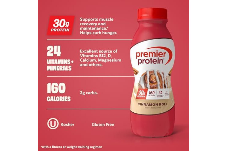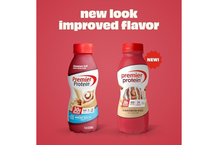 Premier Protein Shake, Cinnamon Roll, 30g Protein, No Added Sugar, 24 Vitamins & Minerals to Support Immune Health, 11.5 fl oz, 12 Pack
