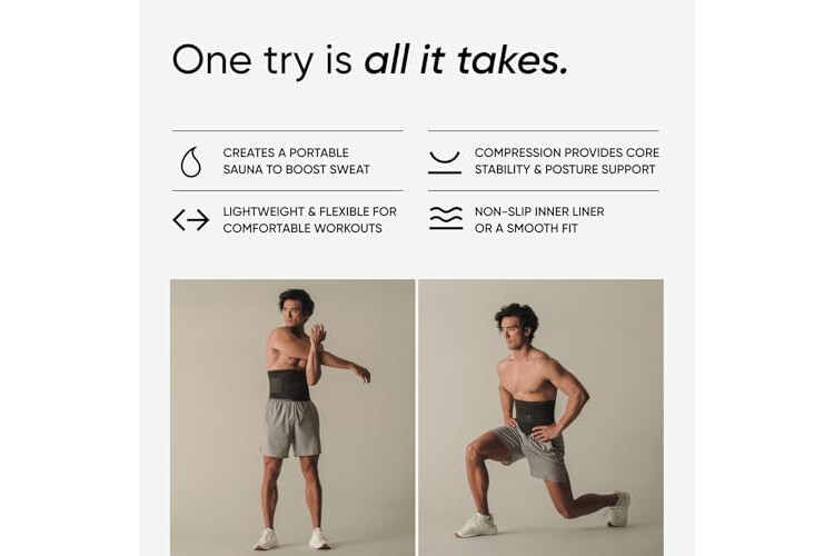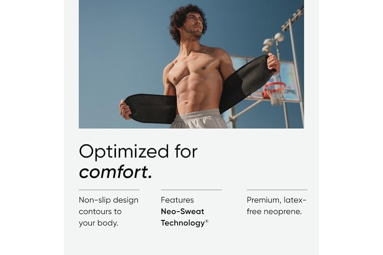 SWEAT FASTER, SWEAT HARDER: Waist trimmer designed with Neo-Sweat Technology, an anti-slip, moisture-repelling interior that provides superior heat insulation to increase core temperature for a harder, faster sweat and to cut excess water weight