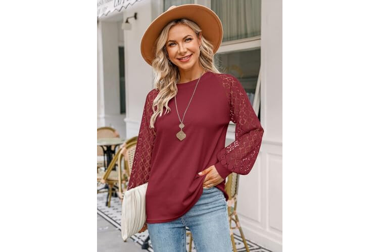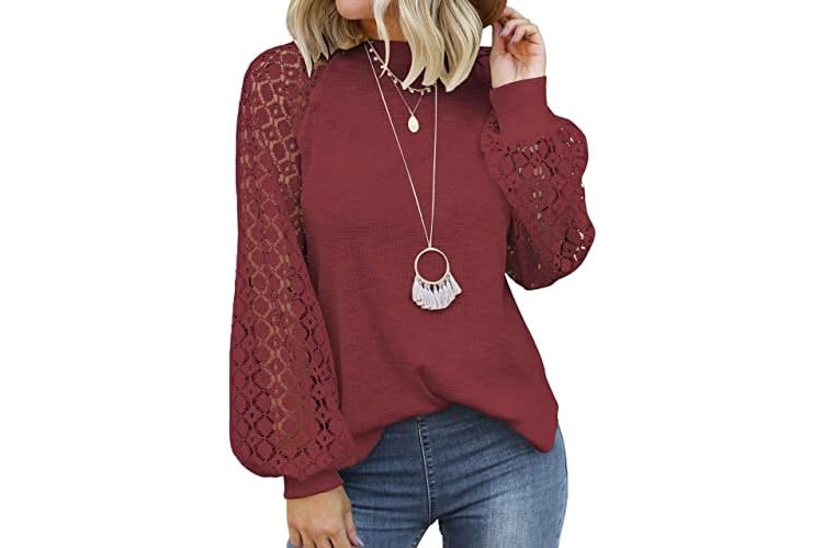 MIHOLL Women’s Long Sleeve Tops Lace Casual Loose Blouses T Shirts
