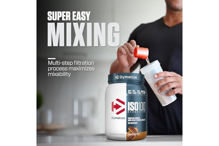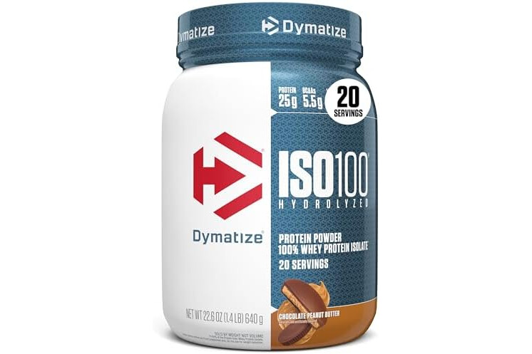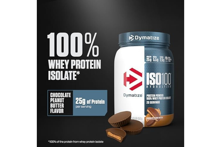 Dymatize ISO100 Whey Protein Powder Isolate, Chocolate Peanut Butter, 25g of Protein, 20 Servings, 5.5g BCAAs, Less Than 120 Cal., Gluten Free, 1g Fat, 1g Sugar, 2g Carb