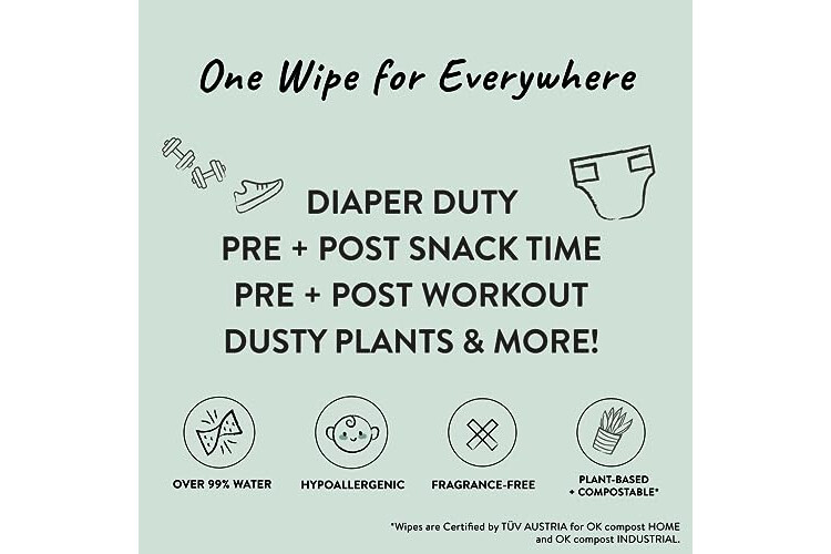 Clean up all of life’s messes. Compostable, plant-based multi-use Wipes are made with over 99% water and only 7 transparent ingredients, making them gentle and safe for baby’s sensitive skin but great for the whole family