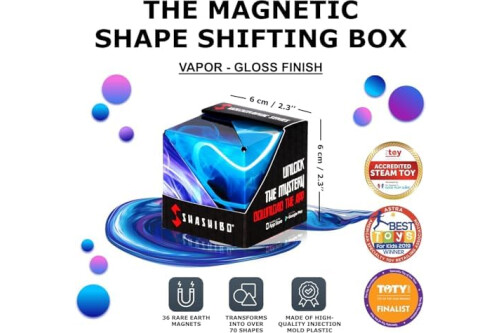 SHASHIBO Shape Shifting Box - Award-Winning Fidget Toy w/ 36 Rare Earth Magnets - Fidget Cube Transforms Into Over 70 Shapes, Sensory Toy Gift for Kids, Teens, and Adults (Vapor)