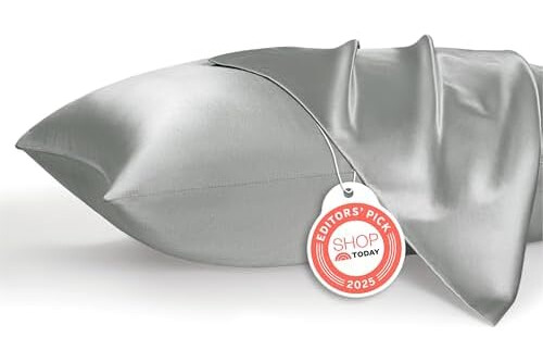 Bedsure Satin Pillowcase 2 Pack Similar to Silk Pillow Cases Standard Size, Pillow Case for Sleeping Women with Envelope Closure, Gifts for Women Men, Silver Grey, 20x26 Inches, 2pcs