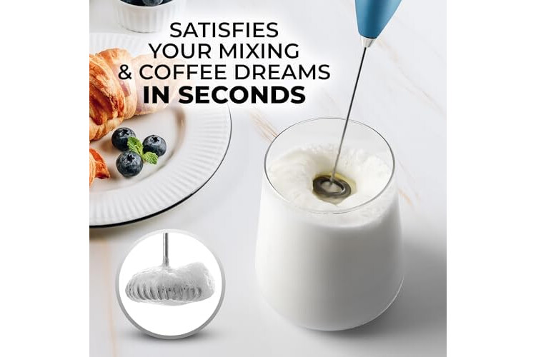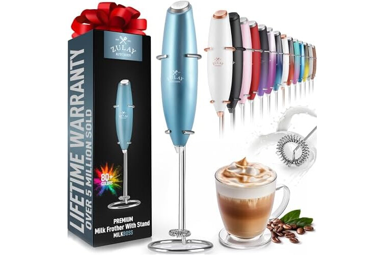 Zulay Kitchen Powerful Milk Frother Wand - Ultra Fast Handheld Drink Mixer - Electric Whisk Foam Maker for Coffee, Lattes, Cappuccino, Frappe, Matcha & Coffee Creamer - Milk Boss Metallic Ice Blue
