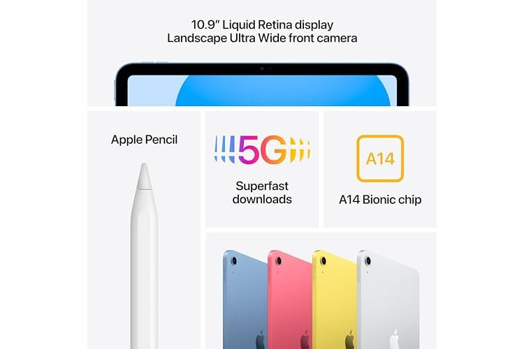 WHY IPAD — Colorfully reimagined and more versatile than ever, iPad is great for the things you do every day. With an all-screen design, 10.9-inch Liquid Retina display, powerful A14 Bionic chip, superfast Wi-Fi and 5G, and four gorgeous colors, iPad delivers a powerful way to create, stay connected, and get things done.