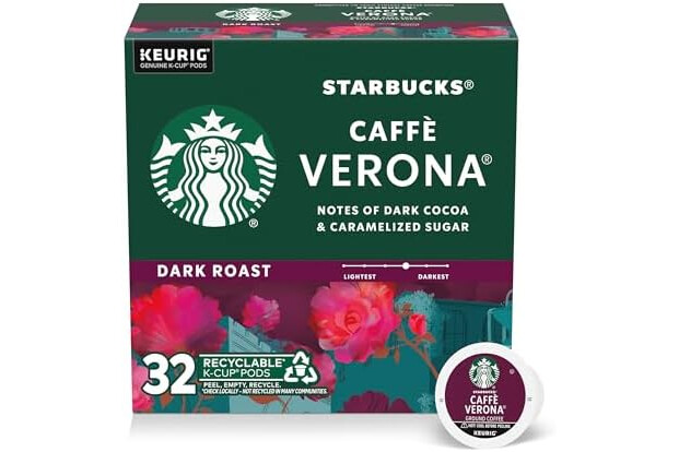 PREMIUM COFFEE IN A K-CUP POD: Enjoy the Starbucks coffee you love at home with a box of 32 Starbucks Caffè Verona Dark Roast K-Cup pods, designed for Keurig coffee makers