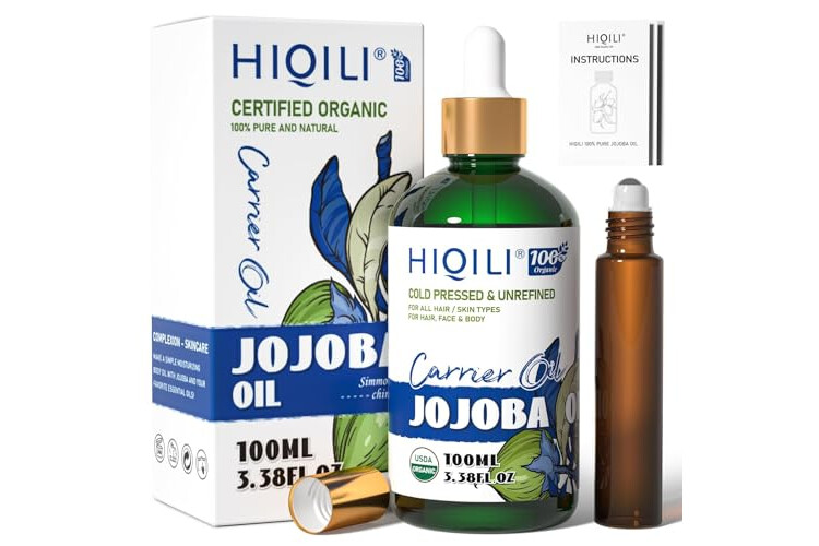 HIQILI 100ML Jojoba Oil Organic for Hair Growth,100% Pure Cold Pressed Unrefined, Included Roller Bottle for Massage - 3.38 Fl Oz